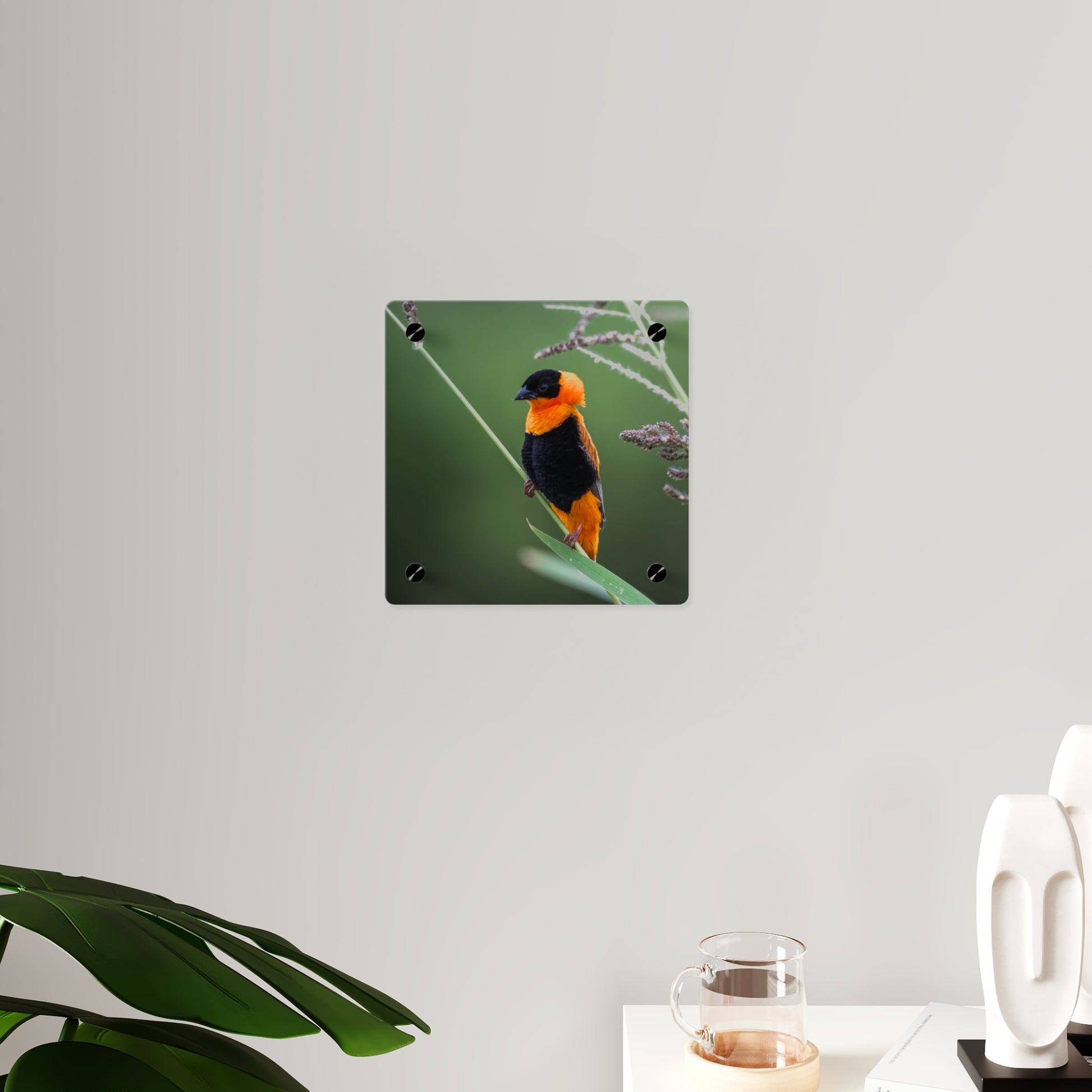 Acrylic Wall Art Panel - Vibrant Northern Red Bishop Weaver from Africa